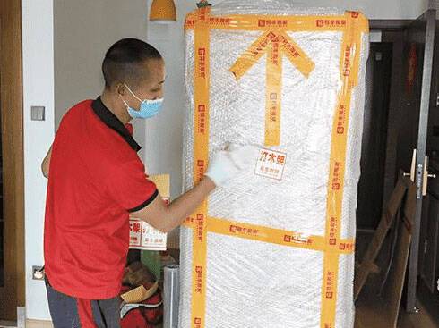 因为家里面东西还是挺多的,不仅小件物品很多,还有很多大件家具家电,师傅们完全不在怕的,气泡膜、缠绕膜、胶带、纸板,对家具家电进行多层包裹,针对一些大件物品还打了木架,这样搬家又放心了一点。
